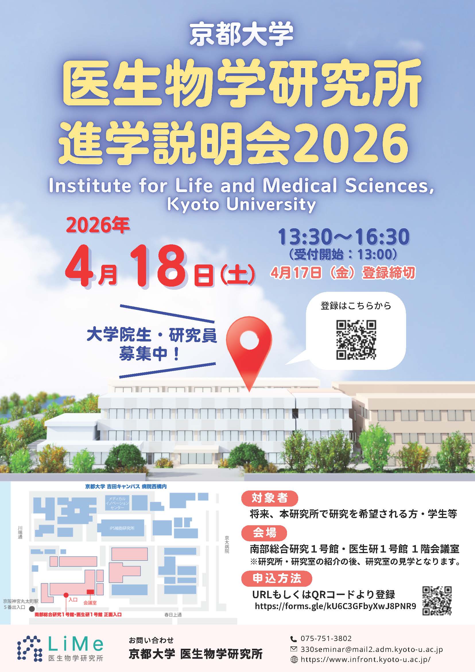 「医生物学研究所進学説明会2026」を4月18日(土)に開催いたします。